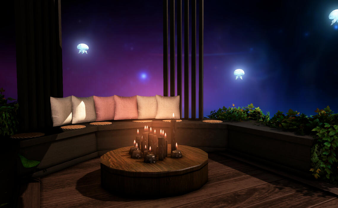 | Info: void build, jump in elevator and room will be locked once requested/purchased. (Includes: bed, bath, swing, firepit, and drinks) |